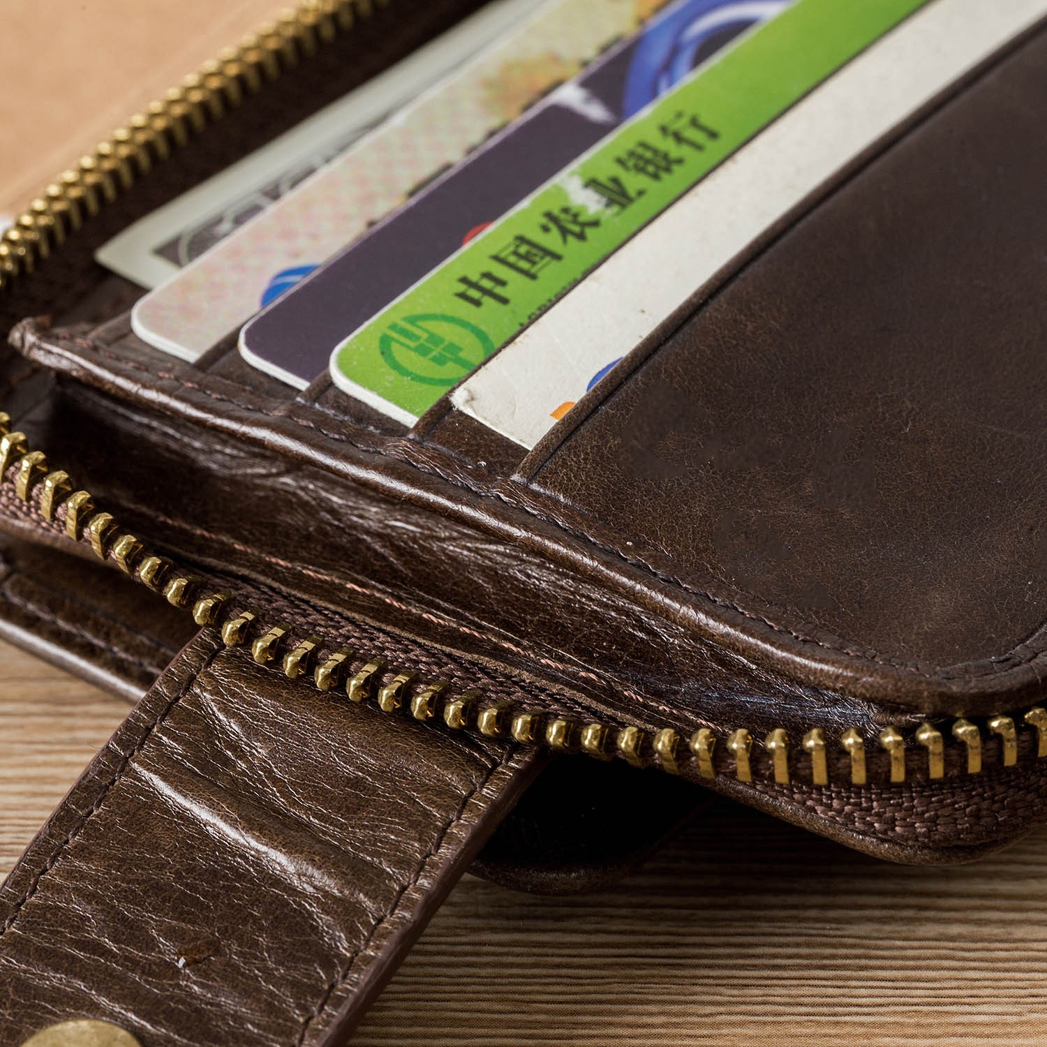 Vintage Men Wallet Genuine Leather RFID Zip Around Large Bifold with Coin Pocket