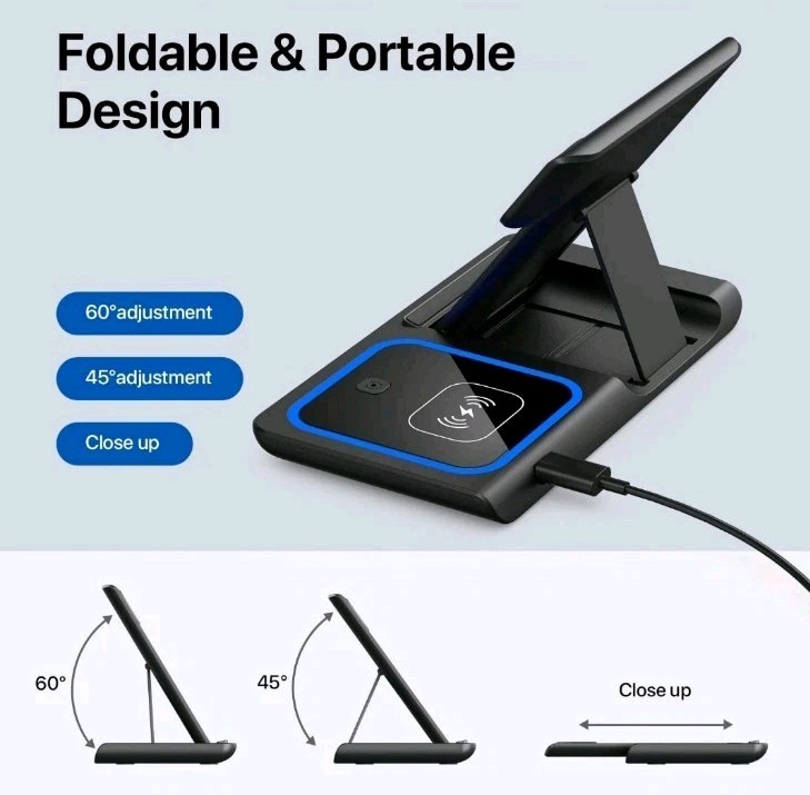 3 In 1 YOXINTA Fast Charging Wireless Black Foldable Charging Stand