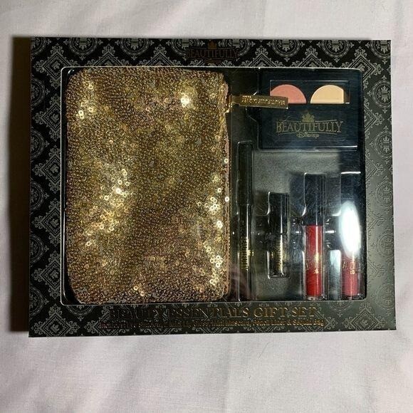 Disney Parks Beautifully Disney Beauty Essentials Gift Set Disney Theme Parks Exclusive Set includes: 2 Eye shadows 2 Mini Lip Gloss Mini Mascara Pencil Liner Sequin Cosmetic Bag New in box Thank you for shopping at Katken Gifts!