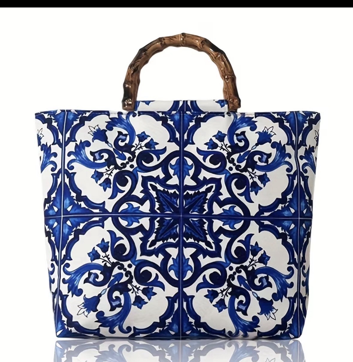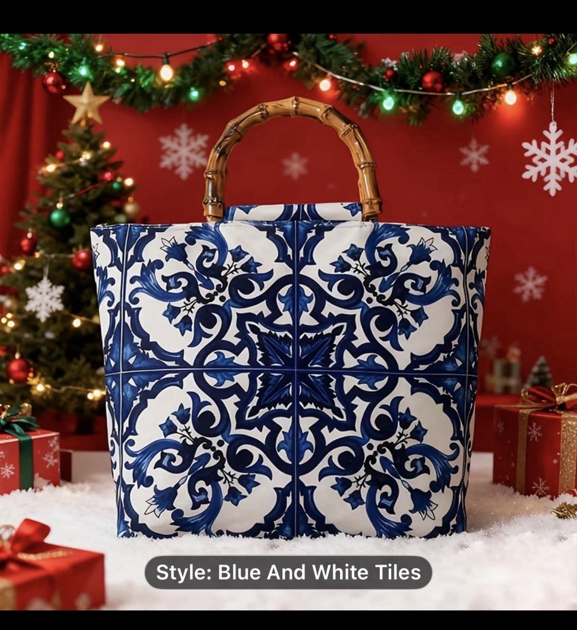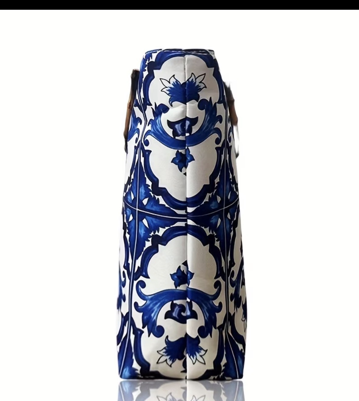 Blue And White Patterned Printed Women'S Large Capacity Tote Bag,