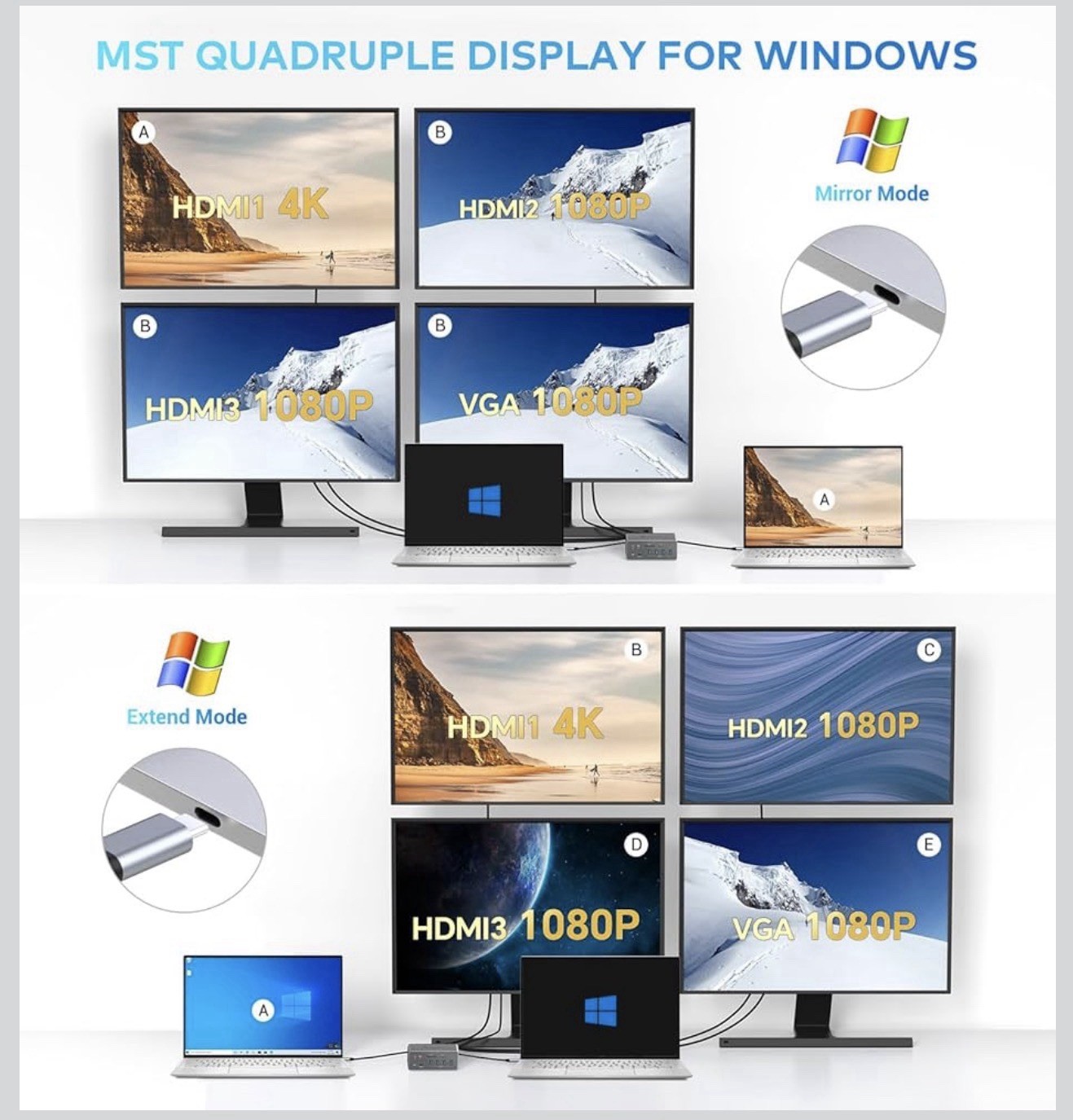 Docking Station -UtechSmart 15 in 1 Full Quadruple Display USB C Docking Station