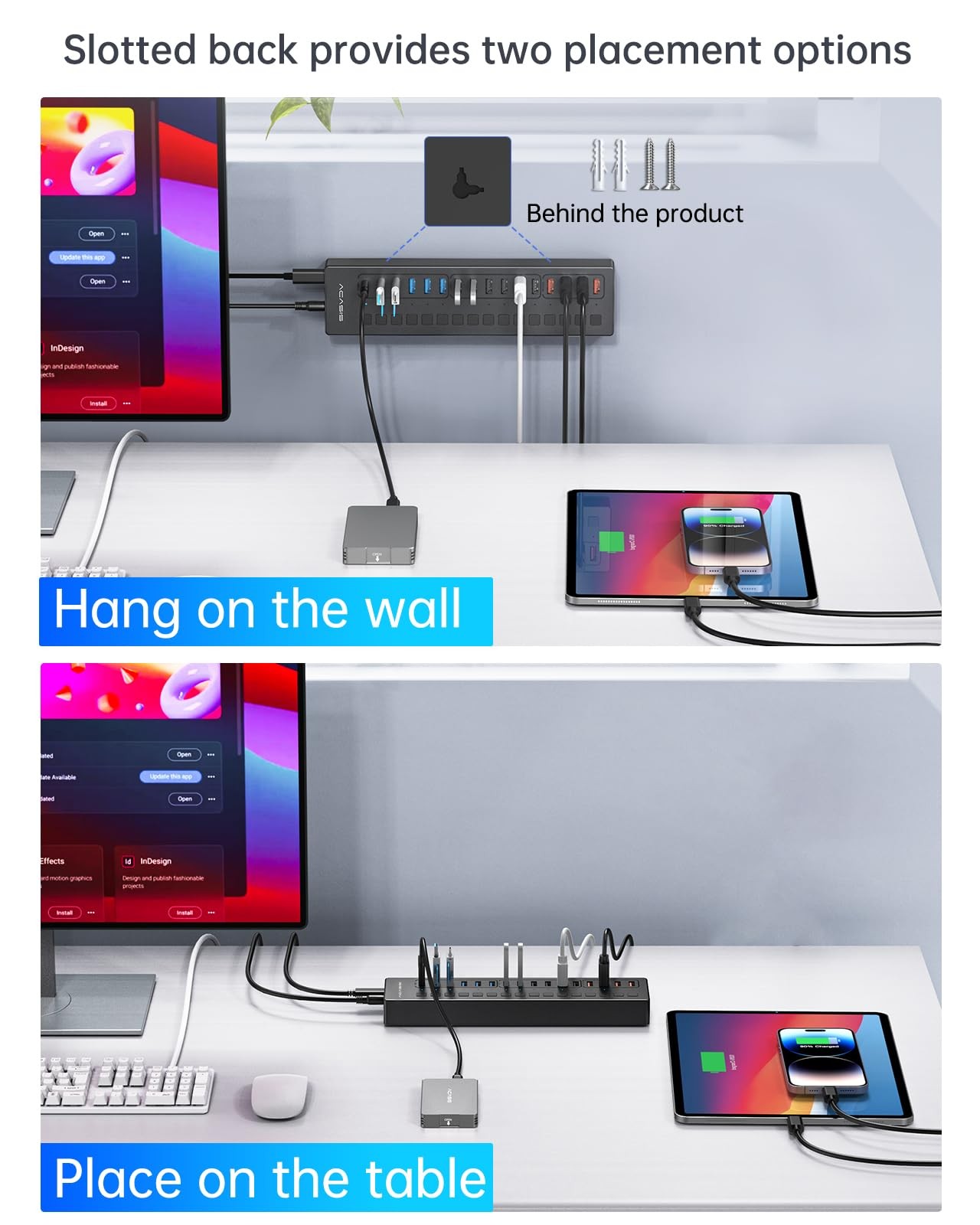 Acasis USB 3.1 Hub 10Gbps 16 Port On/Off Switch with AC Power Adapter for Laptop