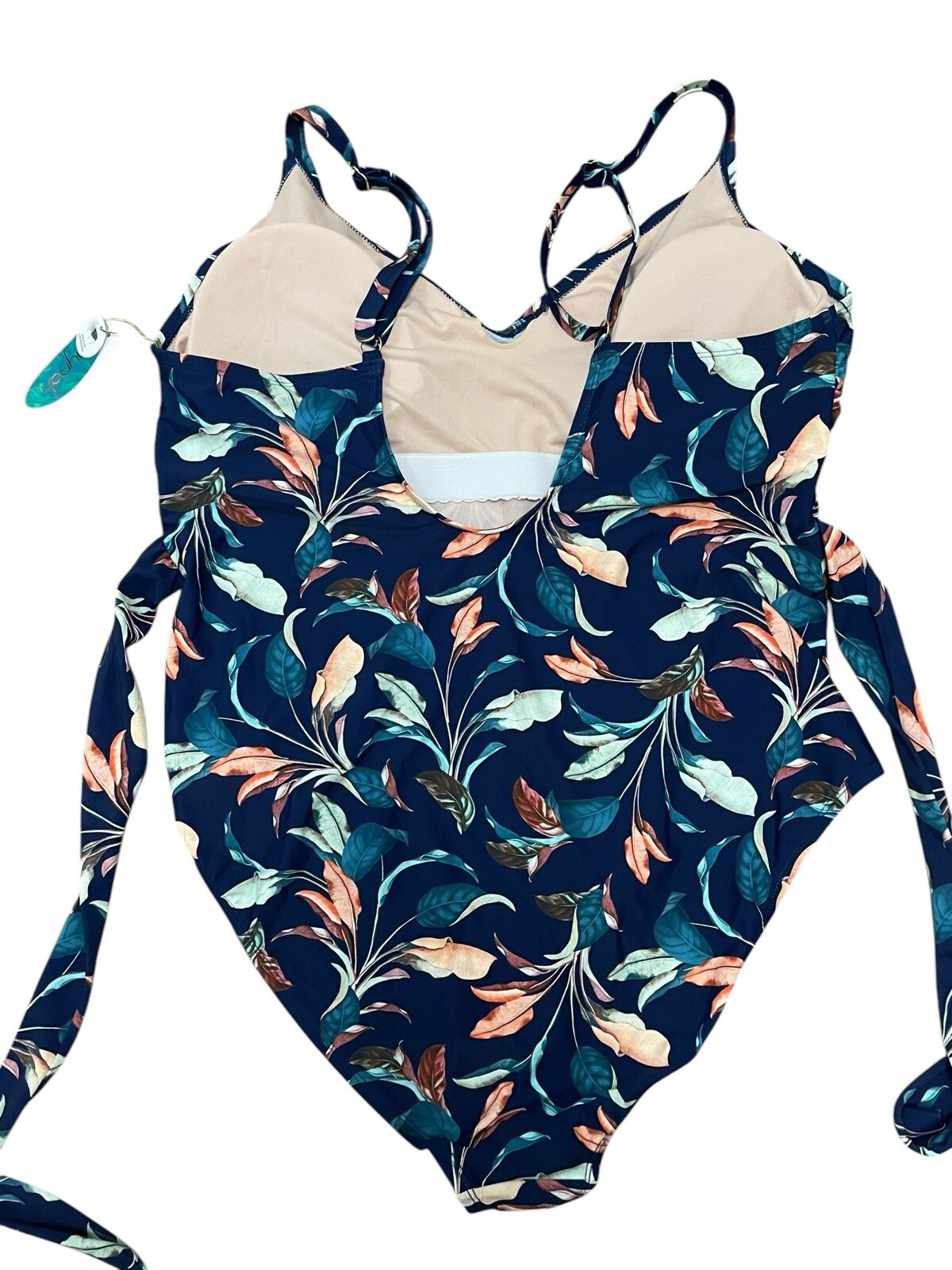 Mynah Womens XL One Piece Swim Tan Bathing Suit Multi-Color Tropical Beach NEW