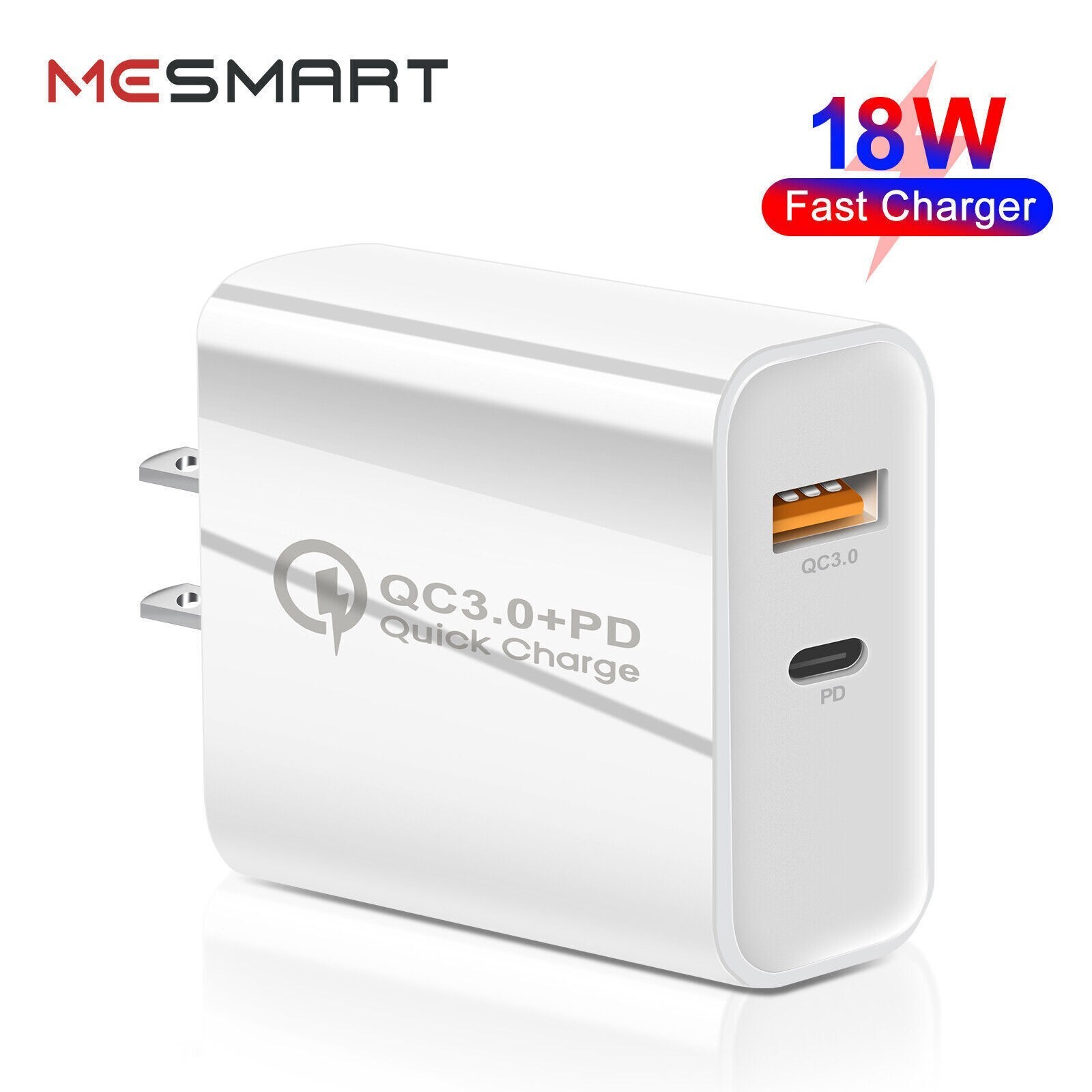 US 20W USB+Type-C Power Adapter AC Home Wall Charger US Plug Wholesale Bulk Lot