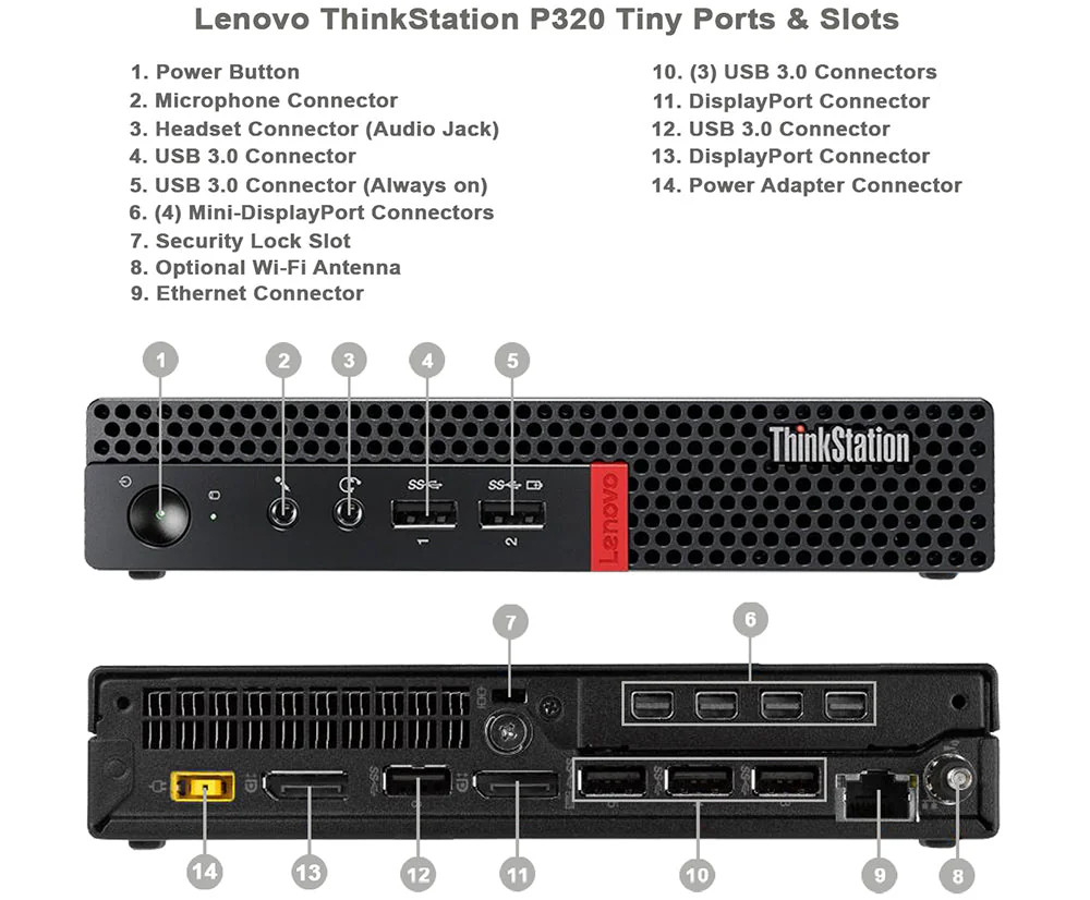 Lenovo P320 Desktop Mini Pc intel i7-7th 32GB RAM 256GB SSD Wi-Fi K&M Windows 11