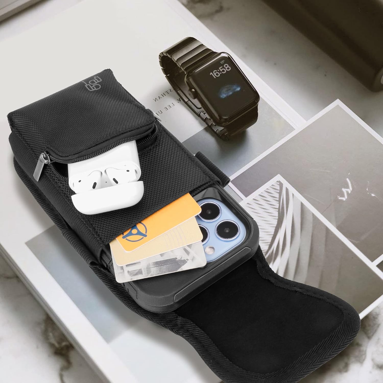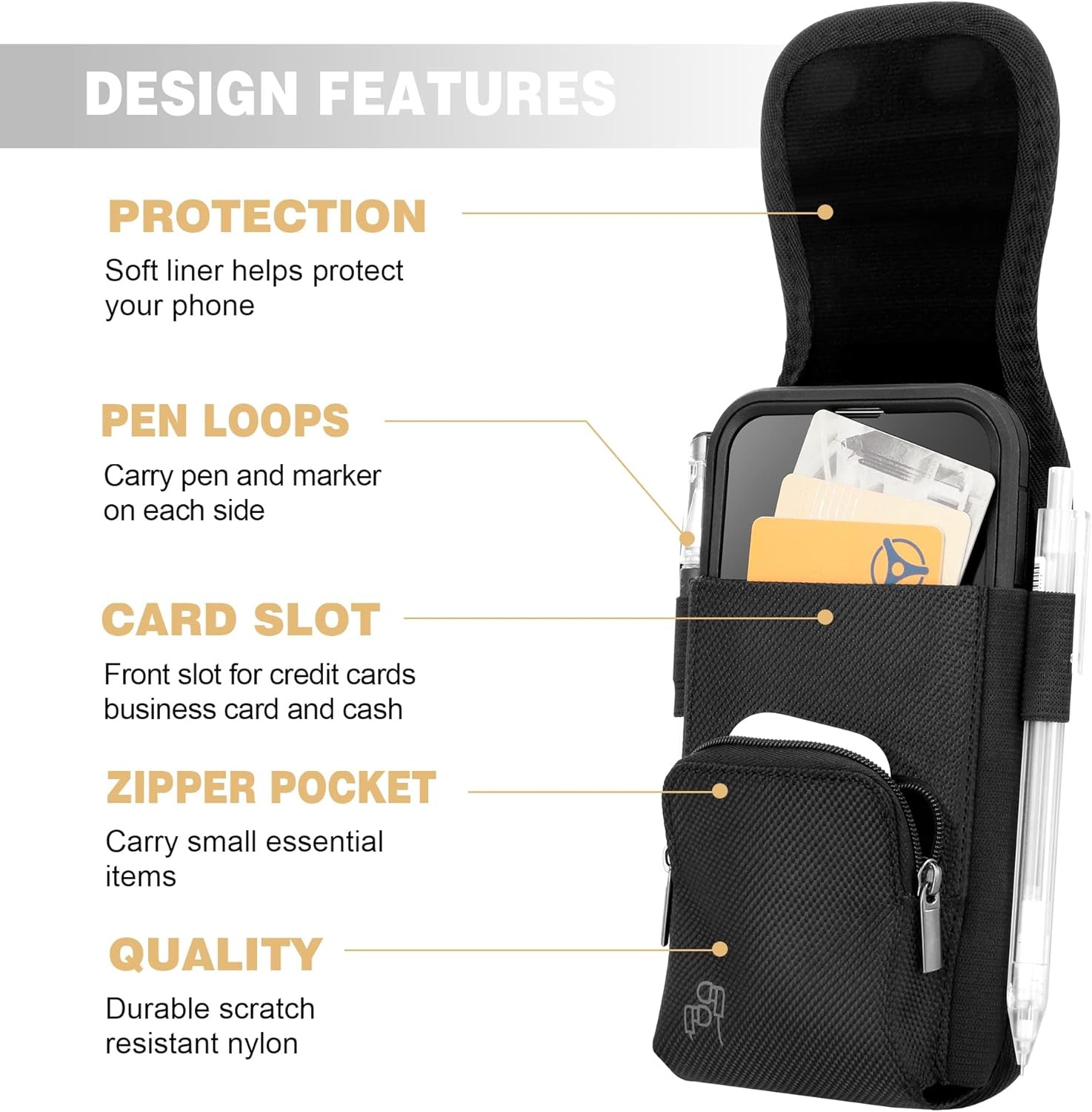 Perilogics Phone Holster with Magnetic Cover. Belt Clip Pouch Large, Black
