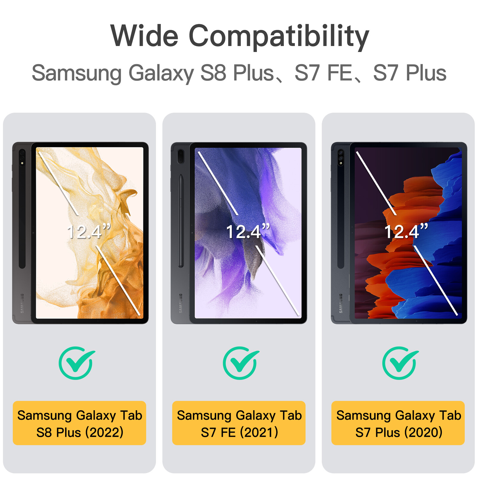 Case for Samsung Galaxy Tab S8 Plus 2022 / S7 FE 2021 / S7 Plus 2020 12.4-Inch