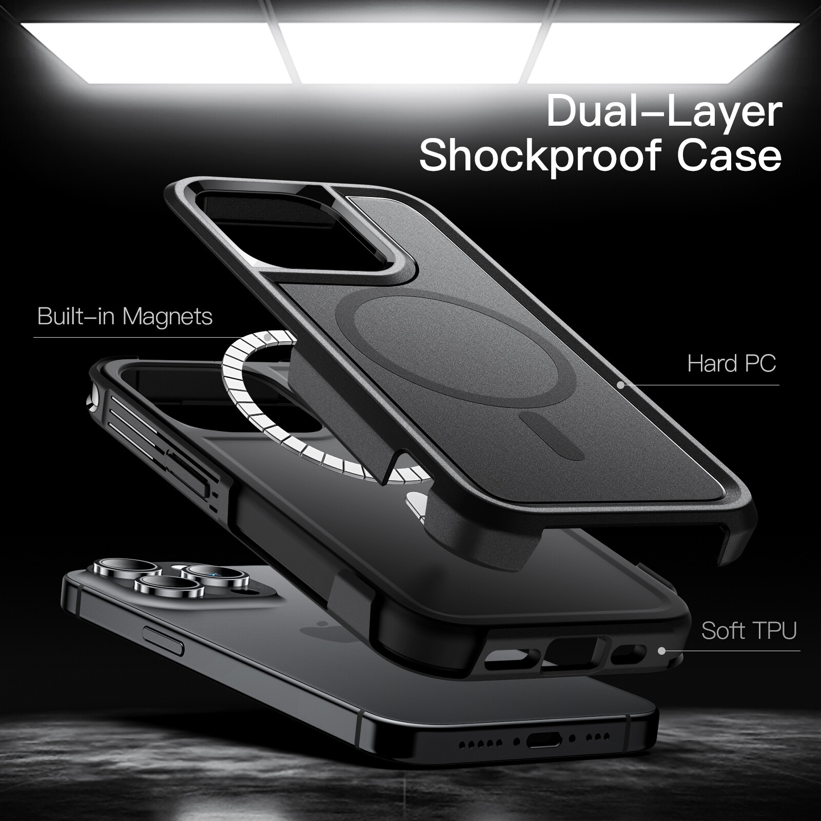 [Easy Magnetic Adsorption] Seamlessly compatible with MagSafe accessories. A dual-layer rugged case with a soft TPU inner shell and a hard PC outer back, provides excellent shock-absorbing and anti-drop protection for your device.