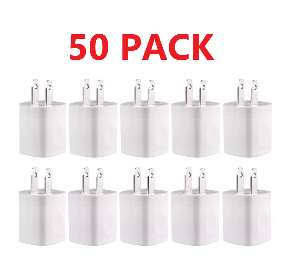 50PACK 1A USB Power Adapter AC Home Wall Charger US Plug FOR iPhone 5 5S 6 7 8 X
