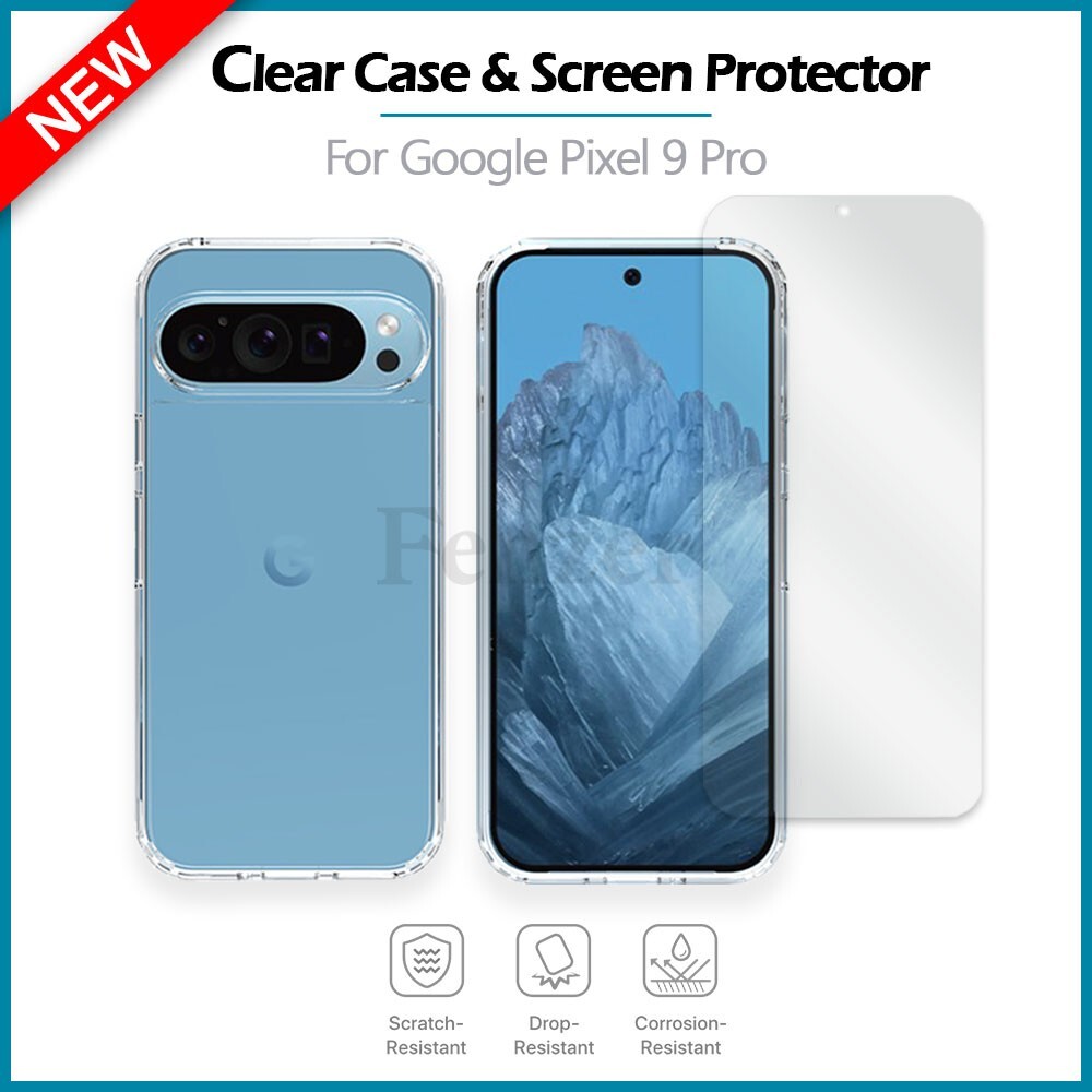 Fenzer Slim Shockproof Phone Case CLEAR+Screen Protector for Google Pixel 9 Pro