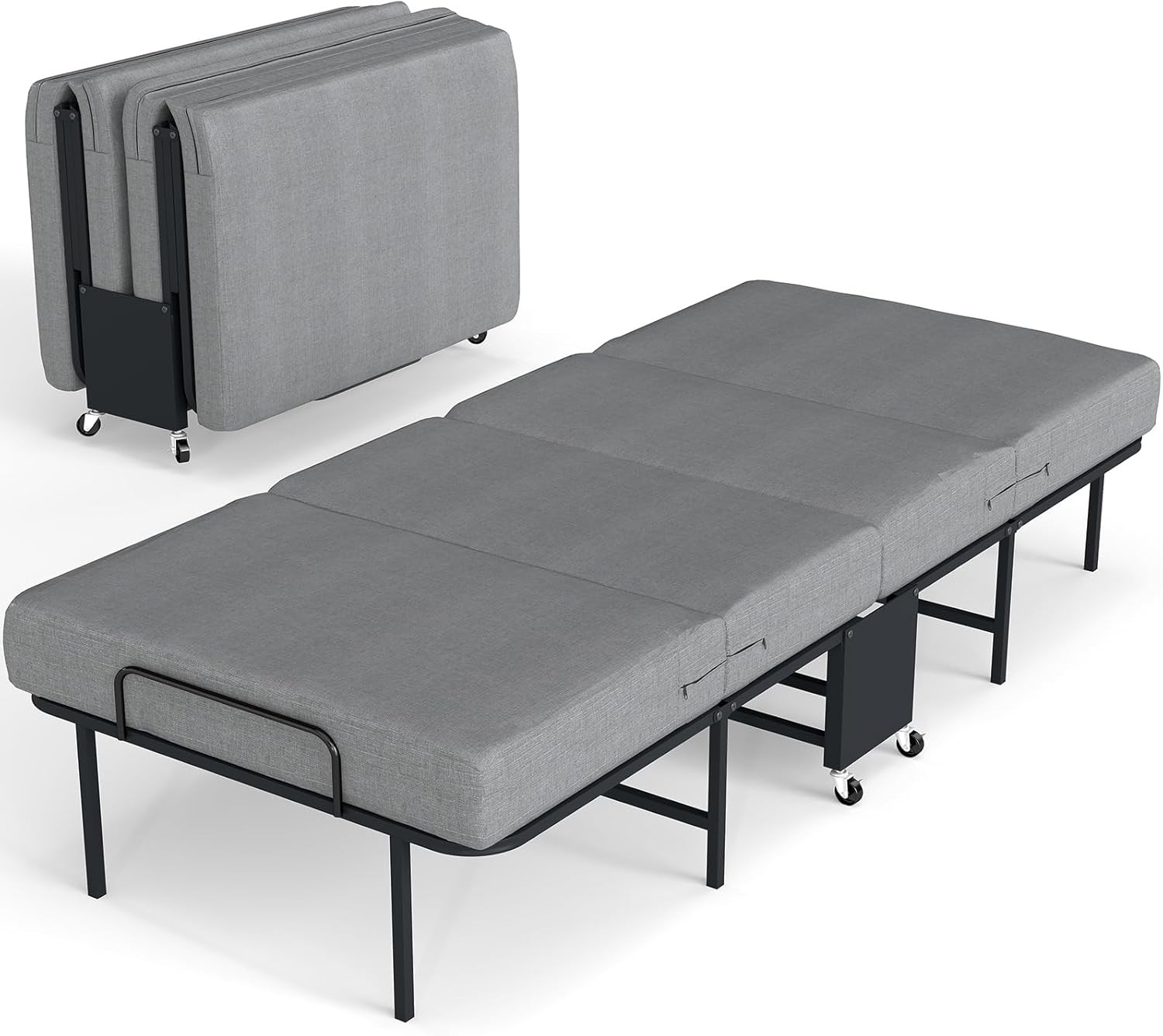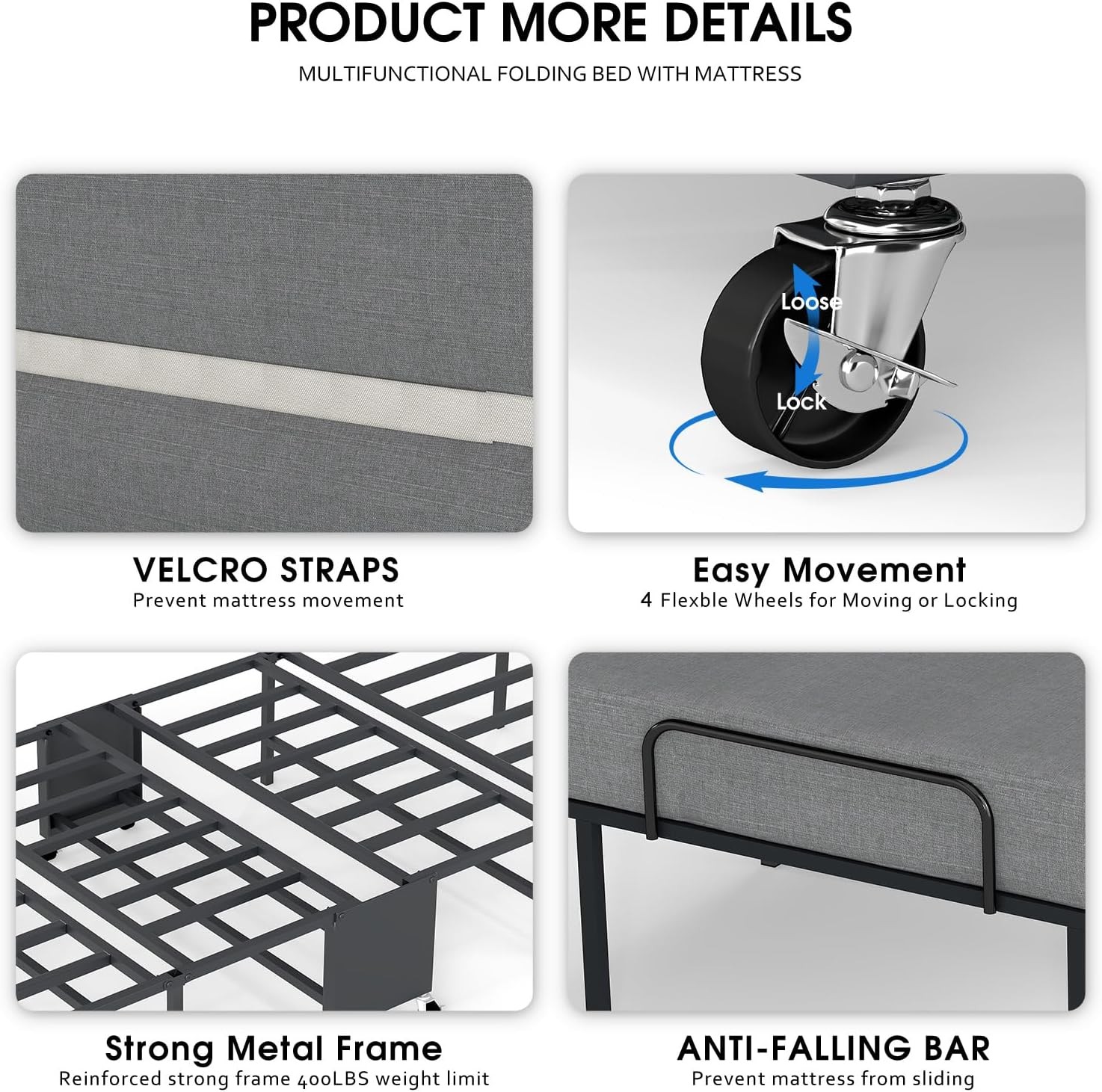A white non-slip pad underneath prevents the mattress from sliding. The cover is removable and washable. Application & Multi-scene The foldable beds with mattress is great for small flats, guest rooms, living rooms, dormitories or outdoor camping, etc.