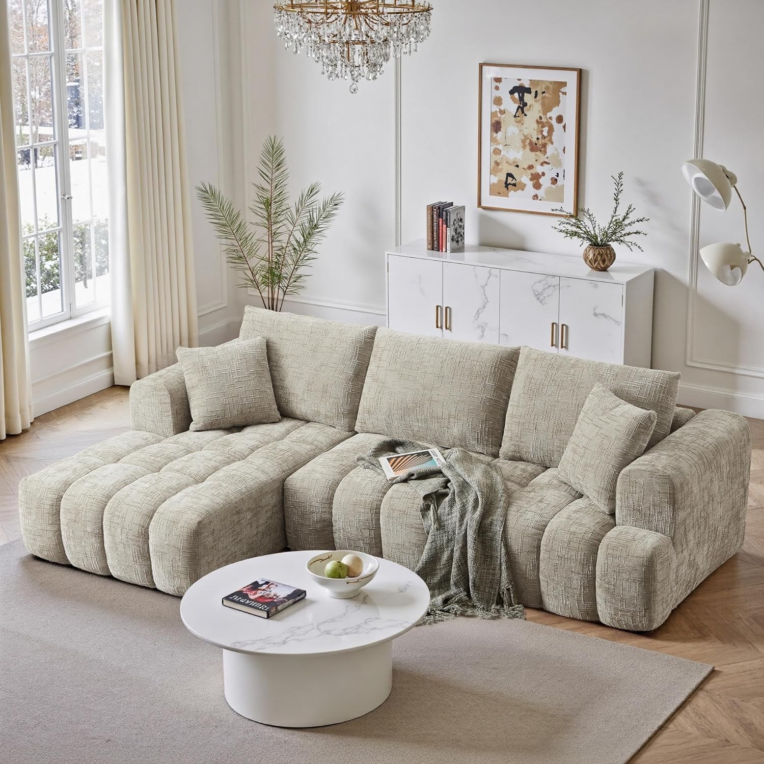 108" L-Shaped Chenille Modular Cloud Couch Boneless Sofa with Oversized Chaise