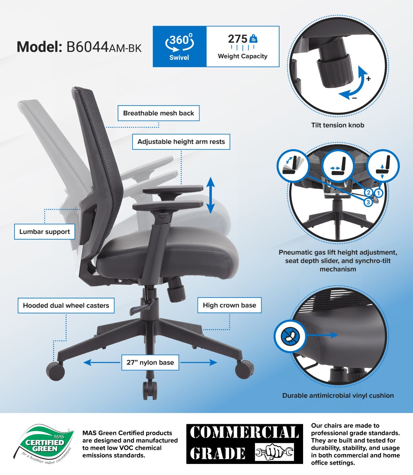 Chair Height (adjustable): ~40.5″ – 43.5″. Includes: Chair, adjustable arms, base, and casters — minimal assembly required. 🪑Why This Chair Stands Out. Height Adjustable Arms: Customize arm support to reduce shoulder and neck strain.