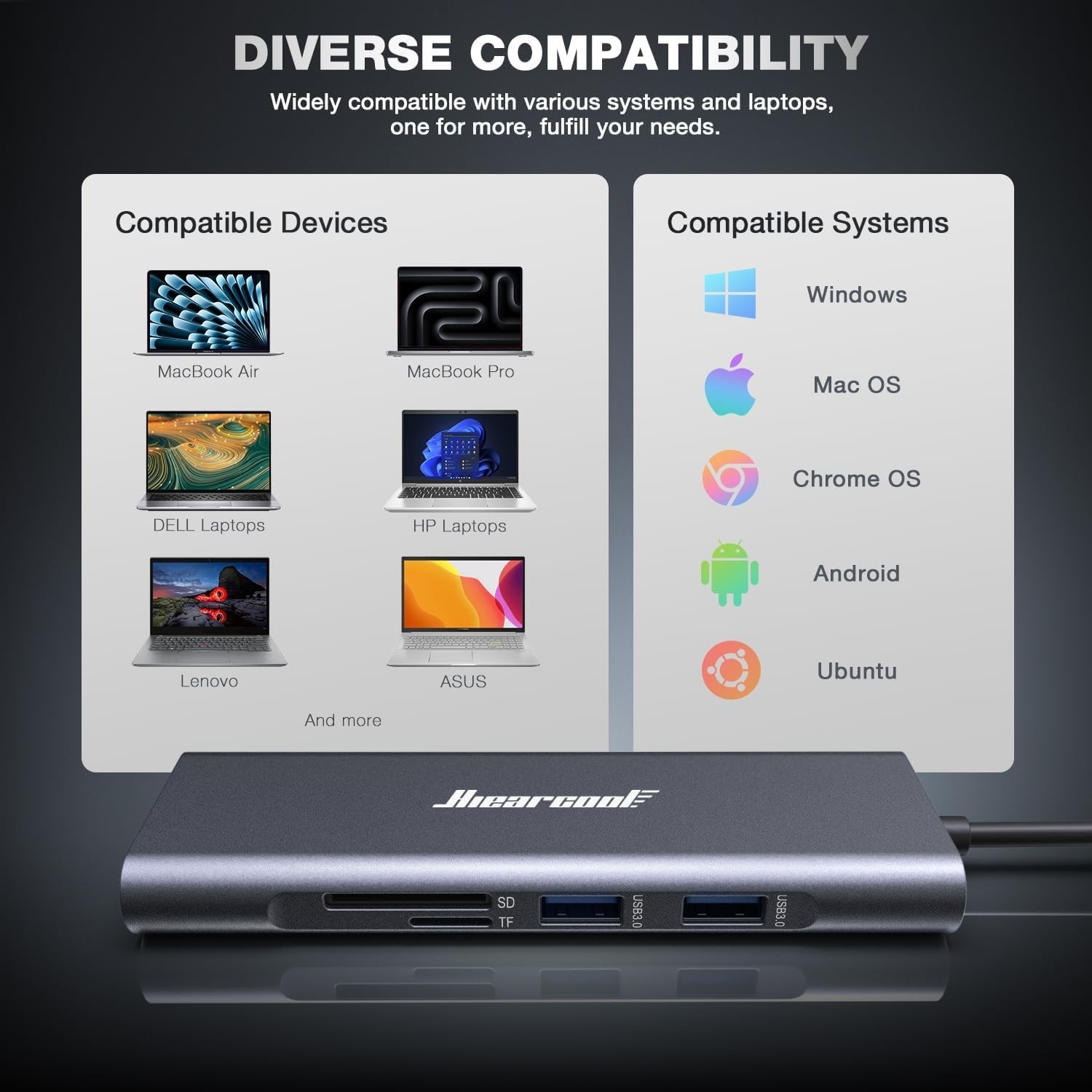 Hiearcool USB-C Hub Ethernet 8-in-1 USB-C to HDMI Multiport Adapter - UCN3610