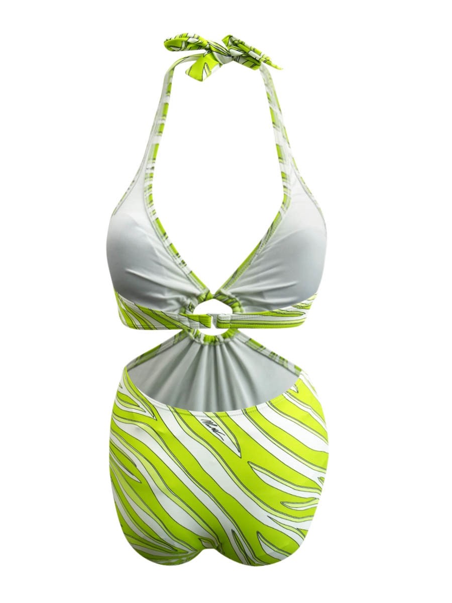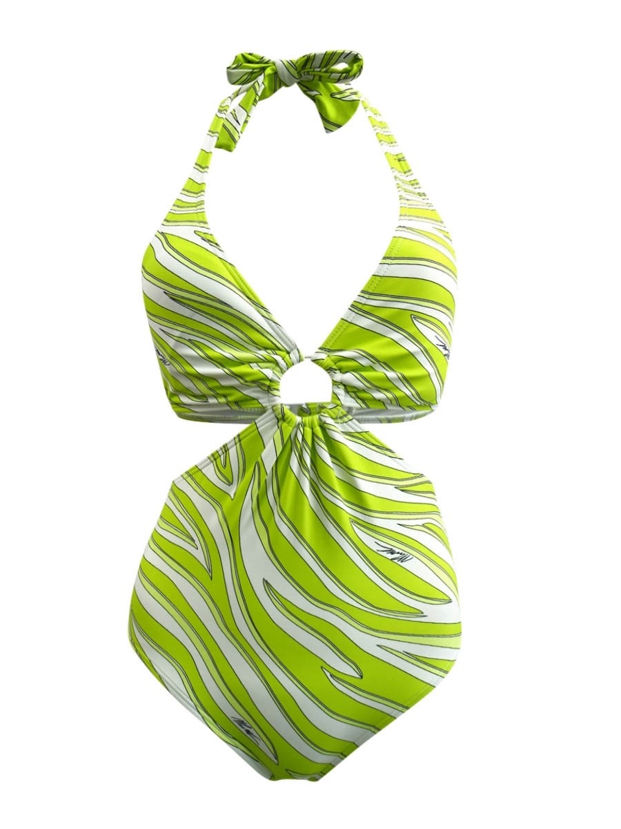 CALIA WOMENS OPEN BACK HIGH NECK ONE PIECE SWIMSUIT ISLAND BOTANICAL MUTLICOLOR