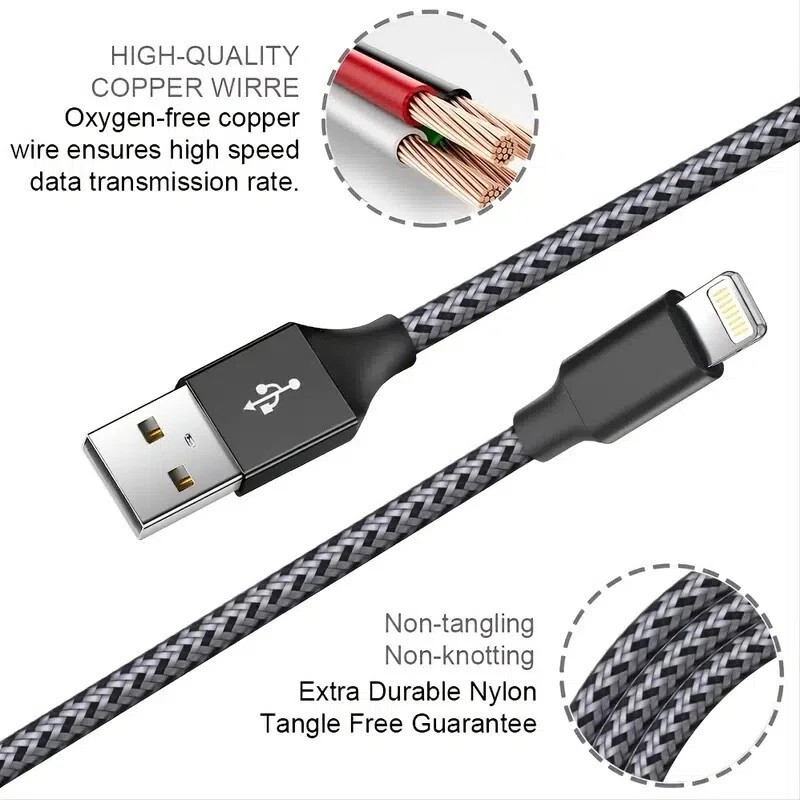Braided Fast Charger Cable Heavy Duty USB lot Cord Fit iPhone 14 13 12 11 X XR 8