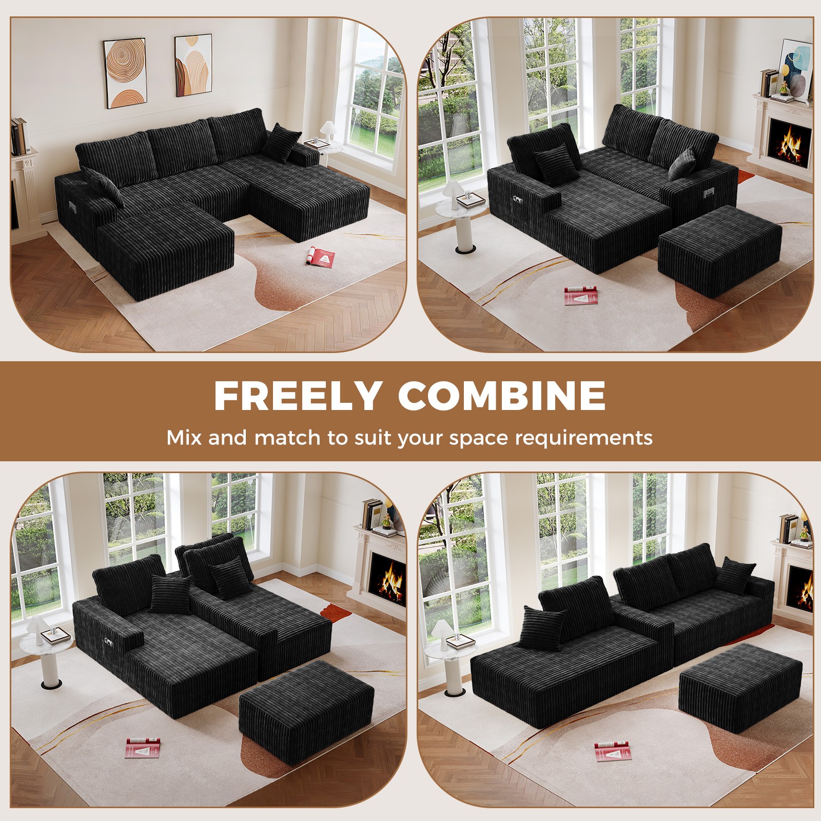 Modular Couch Sectional Sofa 107.09" Free Combination Boneless U-shaped Sofa Bed