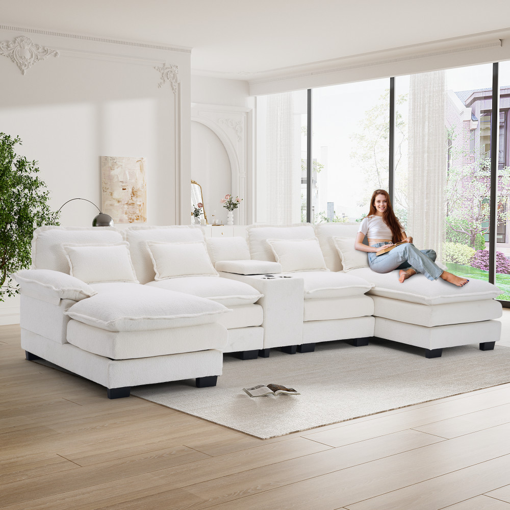 The sectional sofa set is a great piece of furniture for your home, with Double Chaise Lounge. The sectional sofa also equipped with storage box, cup holders, and USB ports for convenient storage and charging. The high resilience cotton filling provides even support, giving you a comfortable experience throughout your body. You can fall on it after a long day at work, settle down with a cup of coffee, or have a talk with your family members or friends.