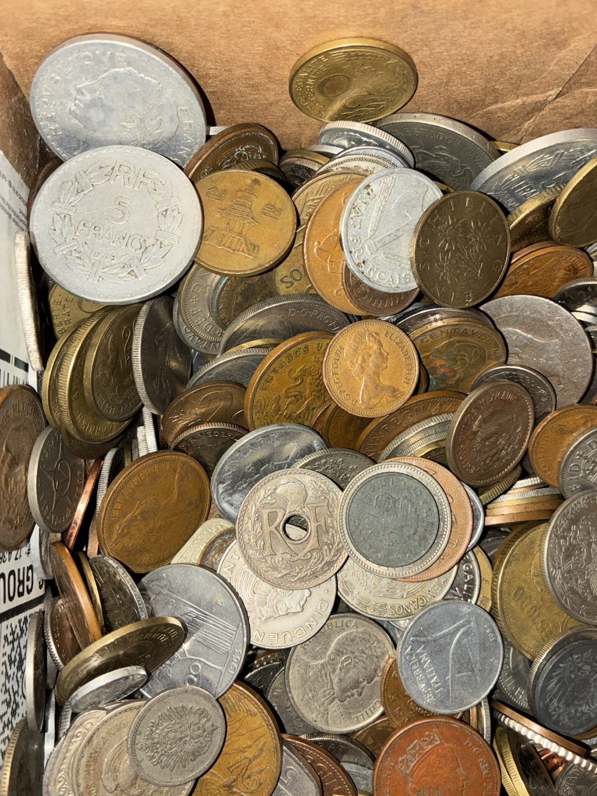 The product is a large mixed bulk lot of 100 random world coins spanning from the 1800s to the 2000s. These coins are from all over the world. I do believe there’s a coin for every country. There are tons of NAZI RIECHMARKS mixed in Cuban, Soviet Union, etc.