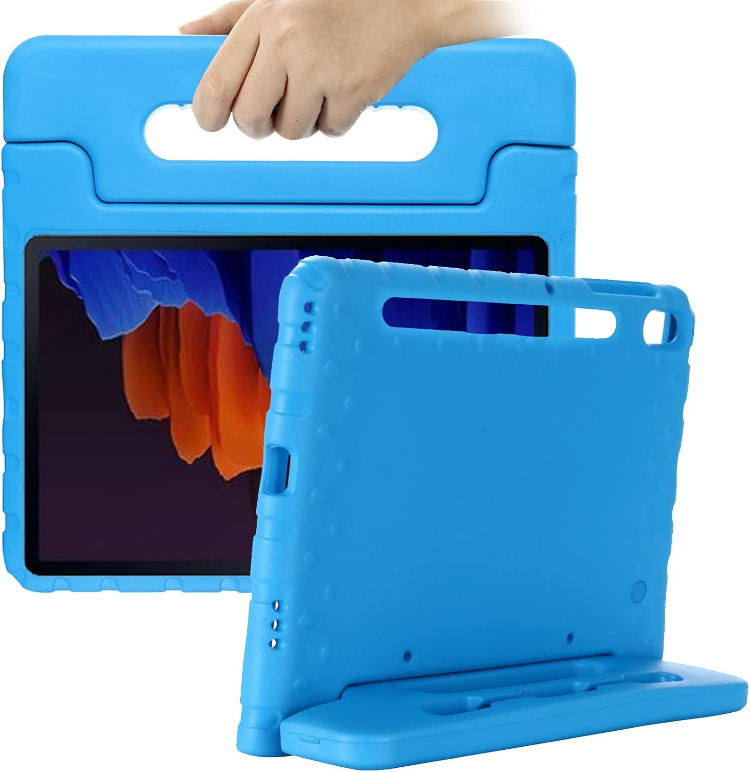 Dteck Kids Shockproof EVA Foam Lightweight Handle Stand Protective Case for Samsung Galaxy Tab S8+/S7 FE/S7+ Tablet 12.4" - Blue. ☼ [Lightweight and Protective]: Super lightweight and child friendly non-toxic soft EVA foam with anti-slip textured sides for a firm grip; Perfect for baby, toddler, boys and girls.