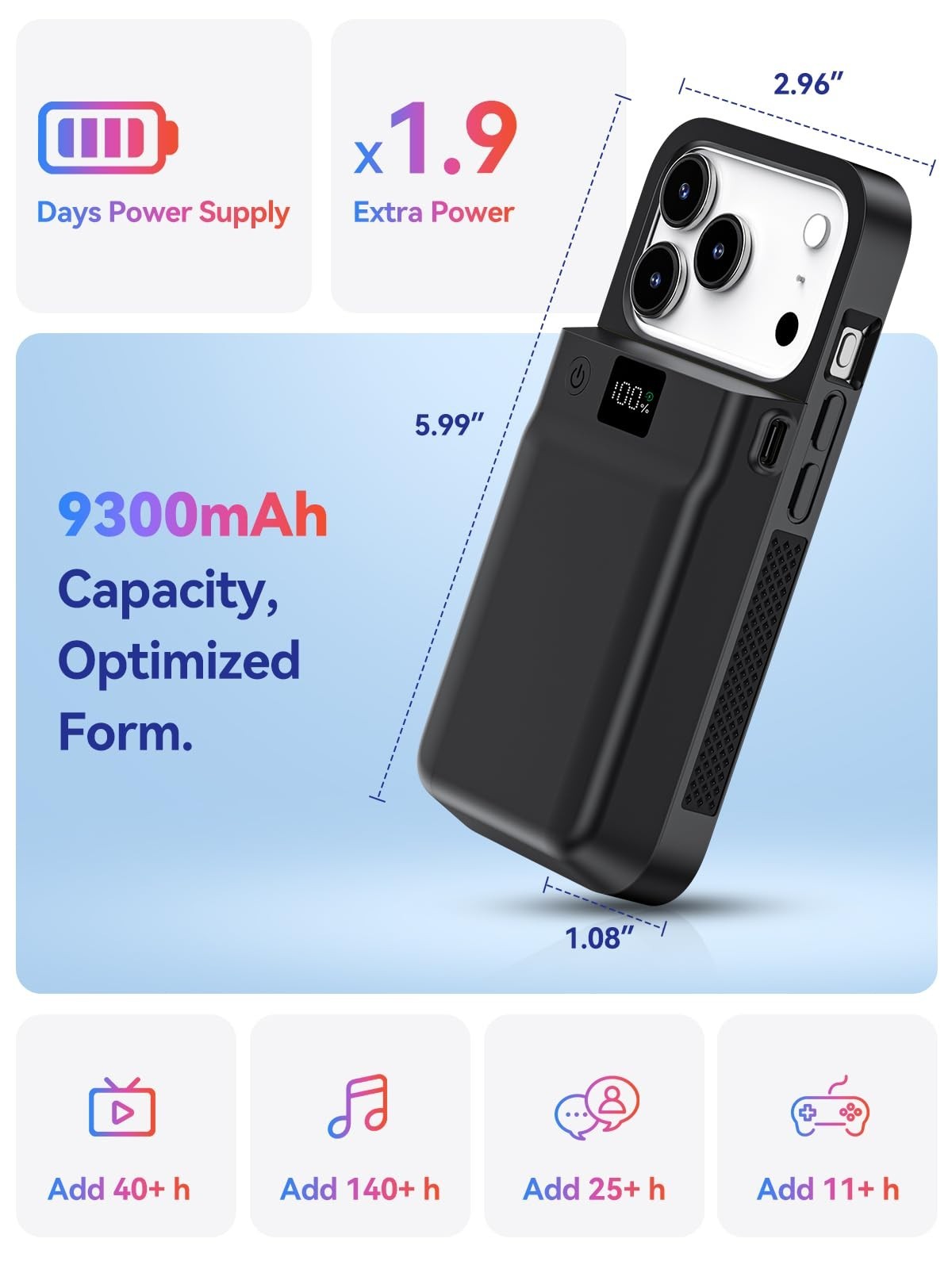 Battery Case for iPhone 17 Pro Max, 9300mAh USB-C iPhone 17 Pro Max - 9300mAh
