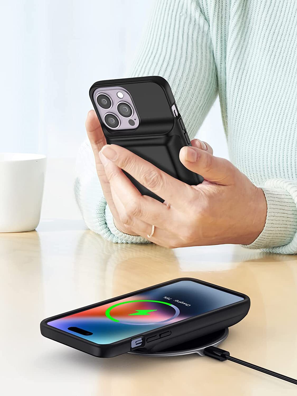 Newdery Battery Case extends more than 250% iPhone X/Xs' battery capacity. Features of iPhone Battery Case One case, two functions - protection and charging. Reverse Charging Protection. Soft plastic head.
